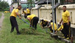 Sat Intelkam Polres Way Kanan Bersama Masyarakat Bersihkan Fasilitas Umum dalam Rangka Mengimplementasikan Arahan Presiden Prabowo