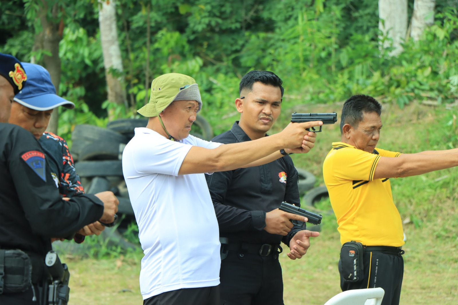 Para peserta kemudian melaksanakan latihan menembak menggunakan senjata laras pendek dengan posisi berdiri, di bawah pengawasan ketat instruktur dan pendamping dari Personil Sat Brimob Kompi III Menggala.