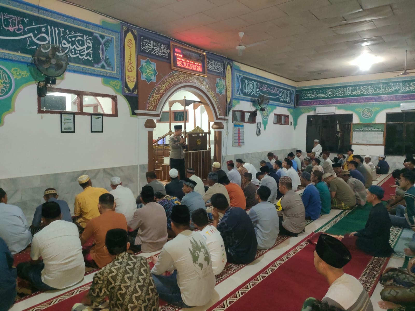 Kapolres Tulang Bawang Barat (Tubaba), AKBP Sendi Antoni S.I.K., M.I.K. melalui Kapolsek Tulang Bawang Tengah Kompol M.Taufiq, S.H. M.H, pimpin langsung Kegiatan dan dihadiri oleh tokoh agama, tokoh masyarakat, pengurus DKM, anggota Polsek Pameungpeuk, serta warga jamaah sekitar.
