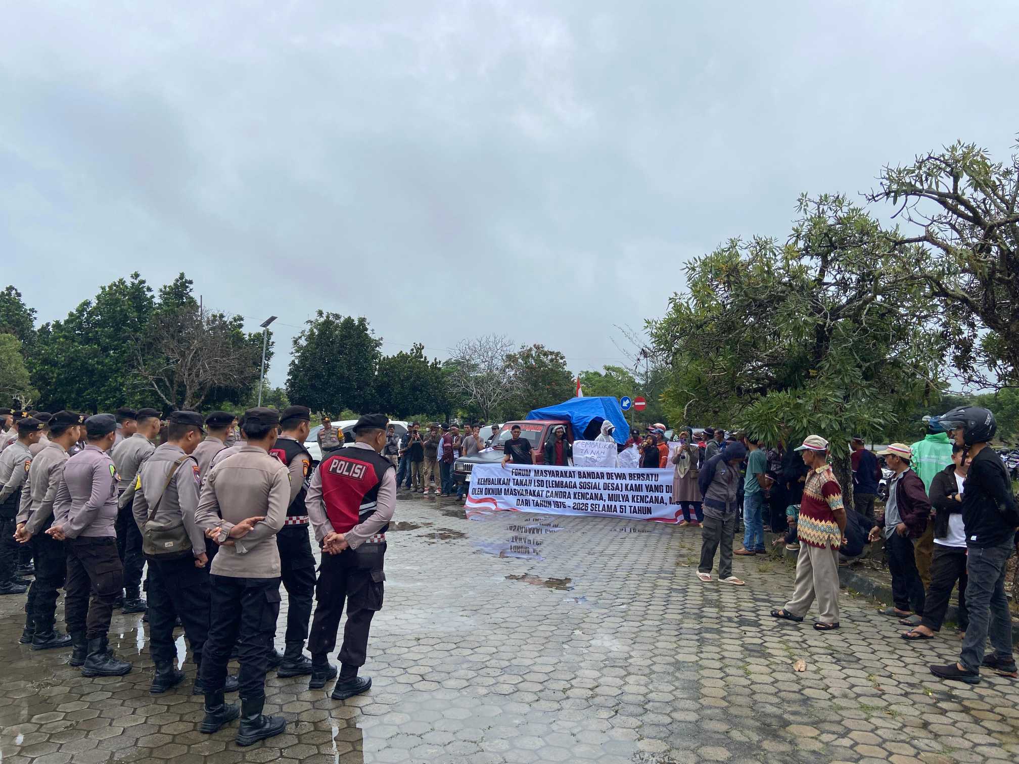 PENGABARAN.ID –  Polres Tulang Bawang Barat, Polda Lampung melakukan pengamanan kegiatan Aksi Damai Penyampaian Aspirasi Forum Masyarakat Bandar Dewa Bersatu (FMBB) terkait permasalahan Sengketa tanah Lembaga Sosial Desa (LSD) Tiyuh/Desa Bandar Dewa bertempat di Kantor Pemerintah Daerah dan Kantor DPRD Kabupaten Tulang Bawang Barat (Tubaba), Senin (02/01/2026).