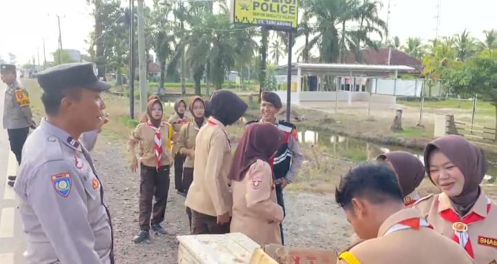 Kegiatan semakin semarak dengan dilaksanakannya pembagian takjil bersama antara personel Polsek dan anggota Saka Bhayangkara, mencerminkan kebersamaan, kepedulian sosial, serta semangat berbagi kepada masyarakat.