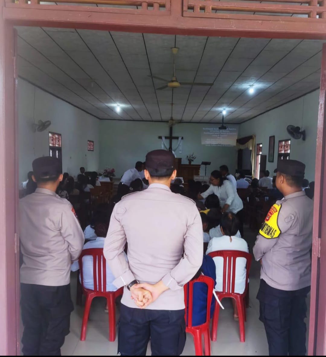 Polsek Tulang Bawang Tengah, Laksanakan Pengamanan Ibadah Gereja Minggu Kasih